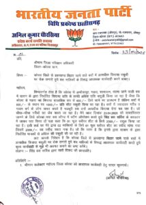 जो बहुत अधिक है। अनिल चौरसिया ने अपने पत्र में कहा है कि बसों में ज्यादातर मध्यम व गरीब परिवार के लोग सफर करते हैं जिन्हें मजबूरी वश बस मे ही सफर करना एक मात्र साधन है। इसका बस मालिक और एजेंट फायदा उठाते हुए उन्हें आर्थिक रूप से नुकसान पहुंचा रहे हैं। पूर्व में परिवहन विभाग के लगातार निगरानी करने से बसों में निर्धारित किराया लिया जा रहा था लेकिन अब फिर से डेढ़ गुना अधिक किराया वसूल किया जा रहा है। अपर स्लीपर में दो लोगों के लिए निर्धारित स्थान रखा गया है लेकिन दो के जगह तीन लोगों को बैठाकर दो सिट मे तिन सीट का किराया वसूली किया जा रहा है। पूर्वांचल के रास्ते झारखंड, बिहार पटना साासाराम गढवा अंबिकापुर के रास्ते आने जाने वाले लोगों को आर्थिक रूप से नुकसान पहुचा रहे है। जिस पर बस मालिकों पर कड़ी कार्रवाई करने की मांग अनिल चौरसिया के द्वारा किया गया है।अब देखना होगा कि अनिल चौरसिया जैसे कद्दावर भाजपा नेता के शिकायत के बाद जिला प्रशासन सुध लेकर कार्यवाही करता है या नहीं?