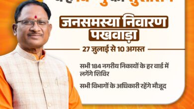 मुख्यमंत्री श्री विष्णु देव साय के निर्देश पर आज 27 जुलाई से 10 अगस्त तक पर नगरीय निकायों में जनसमस्या निवारण पखवाड़ा का आयोजन किया जा रहा है।