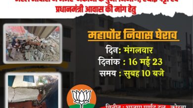 कोरबा पंप हाउस में अटल आवास के पुनर्निर्माण, स्थाई पट्टा एवम प्रधानमंत्री आवास की मांग को लेकर महापौर निवास का घेराव।