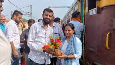कोरबा इतवारी कोरबा एक्स्प्रेस ट्रेन का नागरिक जन सेवा समिति, कोरबा ने किया स्वागत।