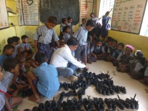 पाली (आई.बी.एन -24) नवाचारी शिक्षक संतोष कर्ष के सदप्रयासों से प्राथमिक शाला कारीछापर में अध्यनरत 70 बच्चों के नंगे पैरों को नए नवेले जूते की सौगात मिली है. नए जूते प्रकार बच्चों की खुशियां उनके चेहरे पर स्पष्ट झलक रही थी.